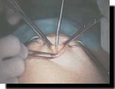 Der erste, oft der Wichtigste - manchmal auch der gefährlichste Schritt bei laparoskopischen Operationen. Wir sind überzeugte Anwender des offenen Zugangs: Bei jeder Operation, an jeder Stelle des Abdomens und in jeder Situation, unbeeinträchtigt von Voroperationen, Narben oder dem Gewicht des Patienten. Die Technik ist simpel, effektiv, risikoarm, in Lehrsituationen gut kontrollierbar und aus unserer Sicht die einzige vertretbare Methode zum Zugang in das Abdomen mit einem Trokar ohne optische Kontrolle.