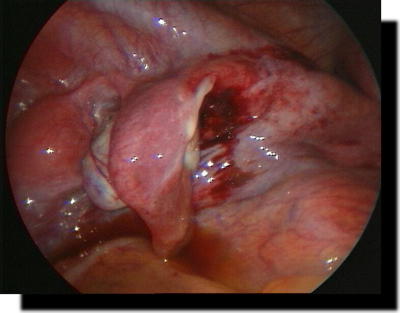 Vorbereitung, Setup: Die Lagerung erfolgt in Rückenlage mit abgeknicktem Rückenteil auf dem normalen Röntgenoperationstisch. Der rechte Arm wird ausgelagert. Vom Anästhesisten wird eine leichte Hyperlordosierungslagerung, soweit möglich, durchgeführt. Der Operateur steht auf der linken Seite des Patienten, der kameraführende Assistent rechts, der Haupt-Monitor und die Insufflationsanlage stehen fussseitig, der Hilfsmonitor links-mittig. Die Operationsschwester steht links neben dem Operateur auf der linken Seite des Patienten. Je nach Befund werden die Positionen gewechselt, eine Wechsellage des Patienten (Fusstief-, Kopftief-, Rechts-, Linksseitlage) sollte eingeplant werden ! Eine perioperative Antibiotikaprophylaxe ist nur bei besonderer Indikation erforderlich. |